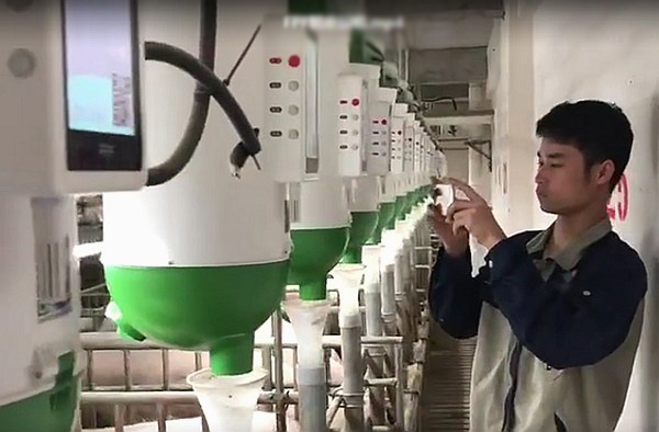監(jiān)測母豬狀態(tài)。揚翔股份供圖