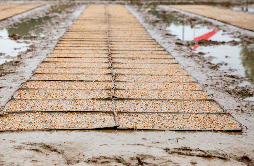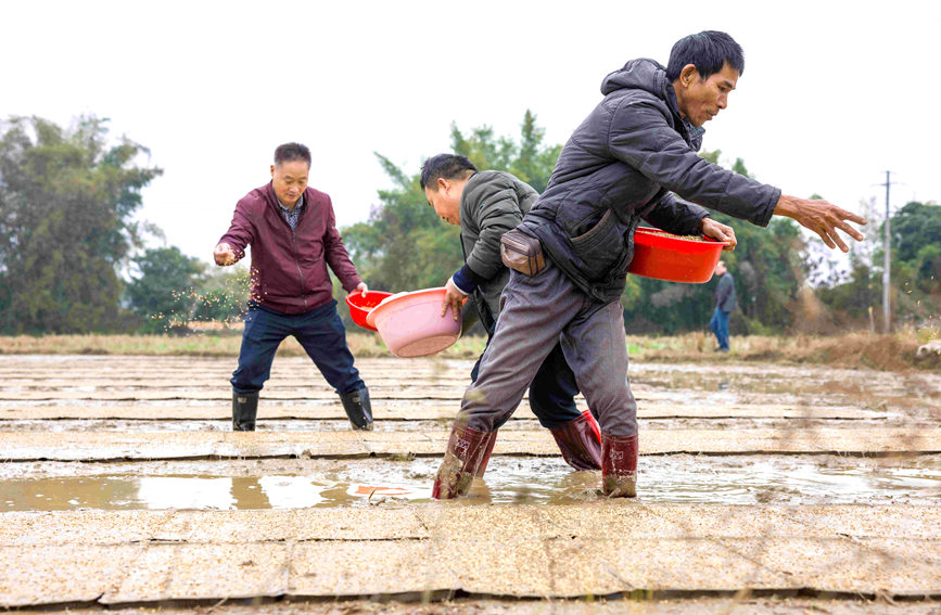 撒播稻種。陸敏攝