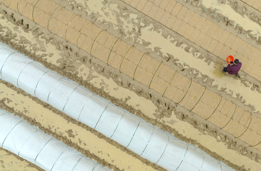 搭設(shè)膜架。陸敏攝