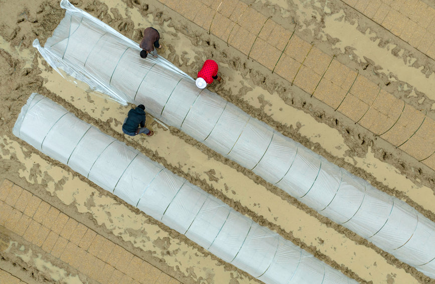 覆膜護(hù)苗。陸敏攝