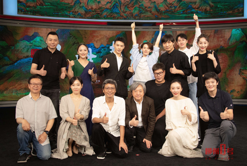 圖為陽(yáng)東霖(二排左三)作為《只此青綠》設(shè)計(jì)師,參加首演新聞發(fā)布會(huì)現(xiàn)場(chǎng)