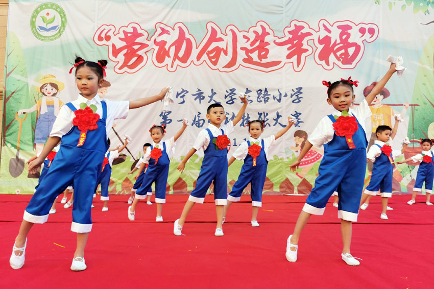 大學東路小學開展以“勞動創(chuàng)造幸!睘橹黝}的勞動技能大賽。西鄉(xiāng)塘區(qū)教育局供圖
