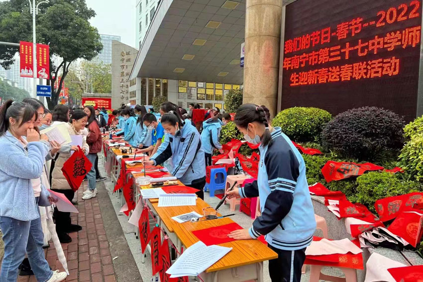 南寧市第三十七中學開展春節(jié)寫對聯(lián)活動。西鄉(xiāng)塘區(qū)教育局供圖