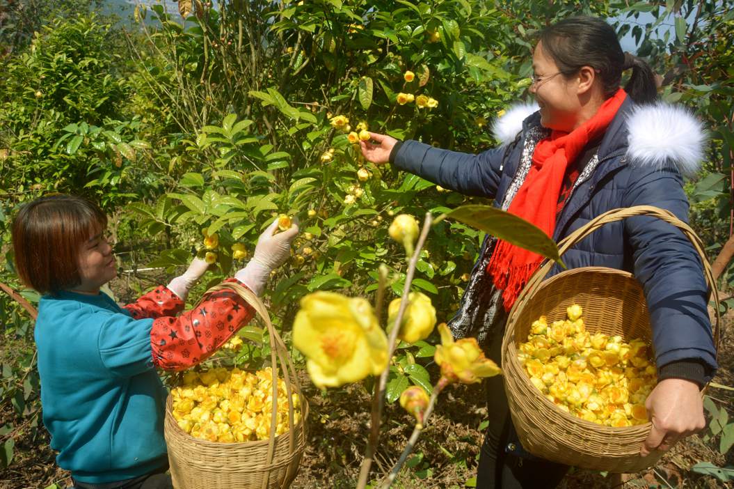金花茶喜獲豐收。