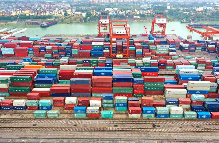 繁忙的貴港港。貴港市交通運(yùn)輸局供圖