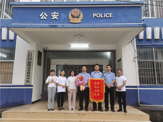 廖熙明代表派出所接受群眾贈送的錦旗