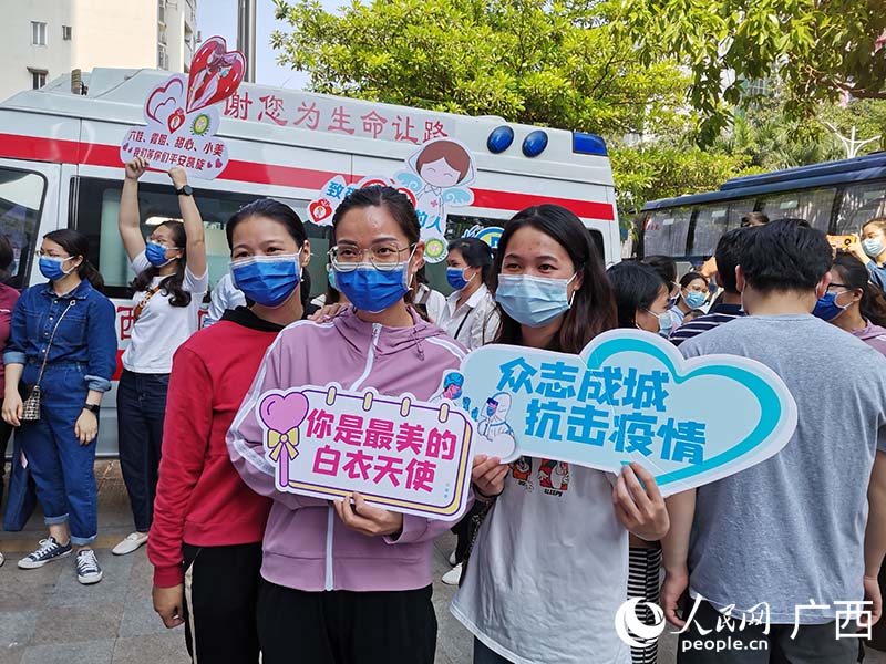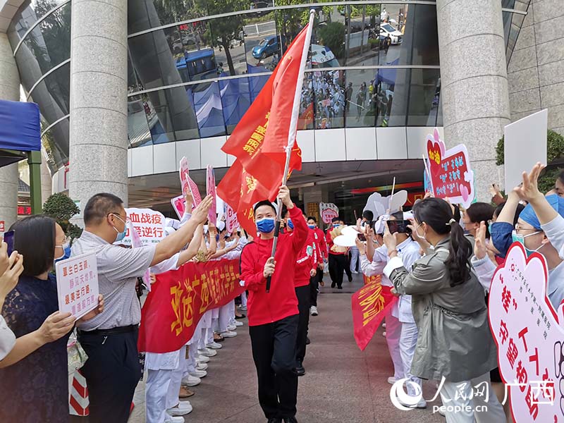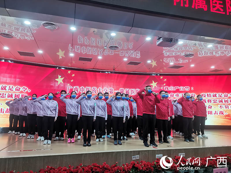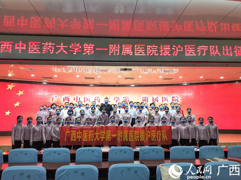 人民網(wǎng)南寧4月15日電 (黃子婧)4月15日上午,廣西中醫(yī)藥大學(xué)第一附屬醫(yī)院援滬醫(yī)療隊(duì)63名隊(duì)員奔赴上海,將與全國醫(yī)護(hù)同仁和上海人民攜手,共克時(shí)艱。