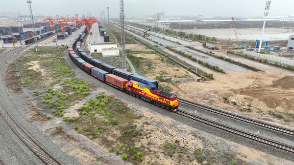 列車緩緩駛出欽州鐵路集裝箱中心站。陳磊攝