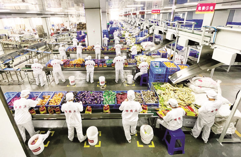 一家柳州螺螄粉企業(yè)生產(chǎn)車間,工人們正在包裝螺螄粉。李斌攝