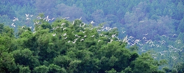 “2006年,我們自發(fā)成立了護(hù)鳥隊(duì),還把護(hù)鳥寫進(jìn)了村規(guī)民約里,村民愛鳥、護(hù)鳥的意識(shí)非常強(qiáng)!贝鬂M村村委副主任陸明念介紹,從上世紀(jì)80年代,陸續(xù)有鷺鳥飛來小滿坡棲息,從剛開始的幾十只到現(xiàn)在的幾萬只,數(shù)量越來越多,種類也越來越豐富。曾經(jīng)有廠家出價(jià)收購村里的竹林,但被村民們拒絕了!爸窳譀]了,鷺鳥也就飛走了,這事我們干不得!标懨髂钫f,不僅僅在小滿坡有鷺鳥棲息,數(shù)公里以外的那蘭村、大王灘,以及屯六水庫都有大量的鷺鳥出現(xiàn)。