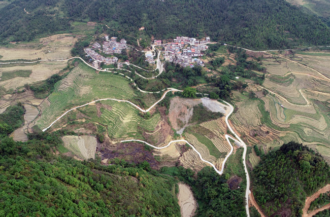從高空俯瞰馱安村,青山疊翠,紅磚綠瓦錯落有致,廣闊起伏的田野里,生態(tài)農(nóng)田、百香果點綴其中,一幅村美、民富、產(chǎn)業(yè)興旺、生態(tài)宜居的美麗鄉(xiāng)村新畫卷盡收眼底。