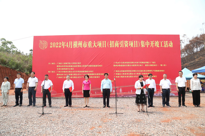 4月29日上午,2022年二季度全區(qū)重大項目集中開竣工活動與2022年4月南寧市重大項目集中開竣工活動同時舉行,主會場設(shè)在南寧市,同時以云視頻連線形式與全市分會場進(jìn)行實時互動。橫州市分會場設(shè)立在廣西輕工學(xué)院六景校區(qū)項目現(xiàn)場,橫州市委書記黃海韜、市長梁楓、市人大常委會主任黃冬麗、市政協(xié)主席薛文和廣西輕工技師學(xué)院院長黃啟良、黨委書記蔣祖國等出席儀式。開工儀式由橫州市委副書記、市長梁楓主持。