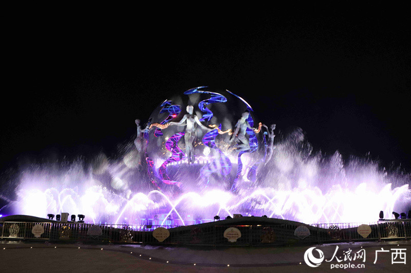 夜幕下的“潮”雕秀。人民網(wǎng) 覃心攝