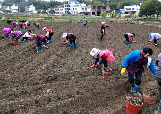 鵝塘鎮(zhèn)塘面村香芋種植基地忙碌的場景。