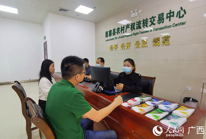 龍輝在鹿寨縣農(nóng)村產(chǎn)權(quán)流轉(zhuǎn)交易中心咨詢業(yè)務。人民網(wǎng) 付華周攝