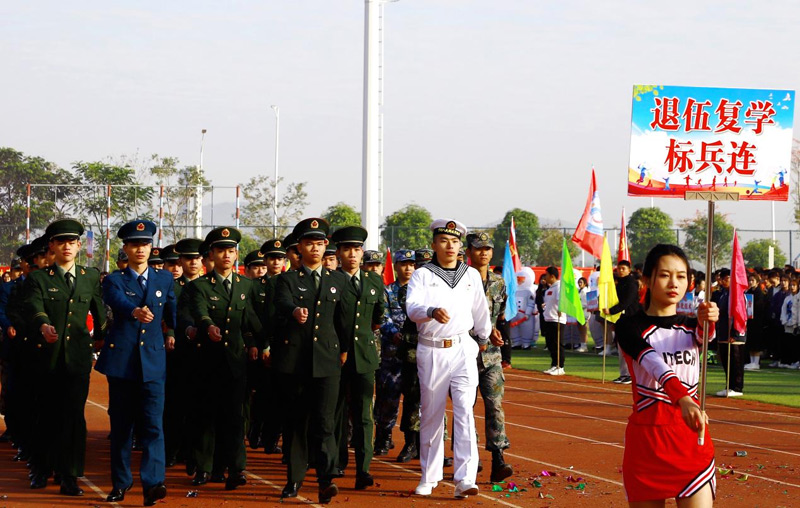 退伍復學標兵連在2021年學院第五屆運動會上閃亮登場。馮華敏攝