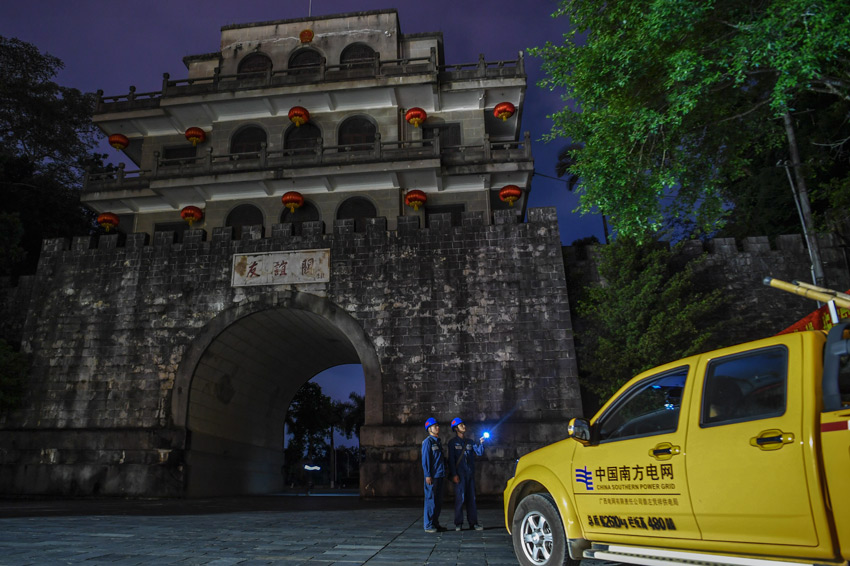 “國(guó)旗巡線(xiàn)班”在友誼關(guān)開(kāi)展線(xiàn)路夜間巡視。馬華斌攝