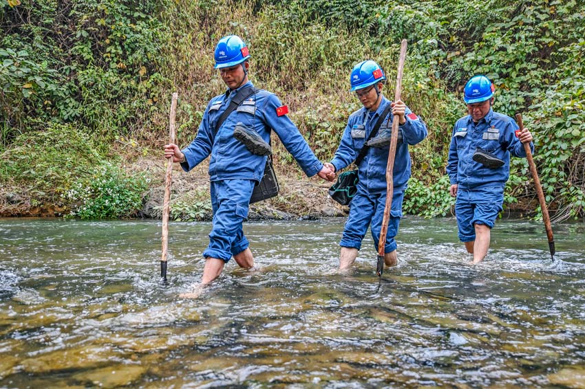 巡線(xiàn)路上過(guò)河淌水。馬華斌攝