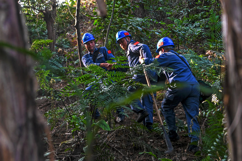 人民網(wǎng)憑祥7月6日電 (記者朱曉玲)在位于中越邊境的山間密林里,一支巡線(xiàn)隊(duì)伍穿叢林、冒風(fēng)雨,沿著電網(wǎng)線(xiàn)路開(kāi)荒前行。隊(duì)員的安全帽和臂章上,五星紅旗鮮艷醒目。這支隊(duì)伍,就是成立于1974年的南方電網(wǎng)廣西崇左憑祥供電局供電線(xiàn)路維護(hù)班。他們也被當(dāng)?shù)剡吤裼H切地稱(chēng)為“國(guó)旗巡線(xiàn)班”。