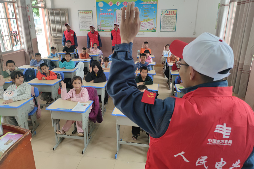 “國(guó)旗巡線(xiàn)班”志愿者在邊境小學(xué)開(kāi)展安全知識(shí)進(jìn)校園活動(dòng)。曾遠(yuǎn)攝