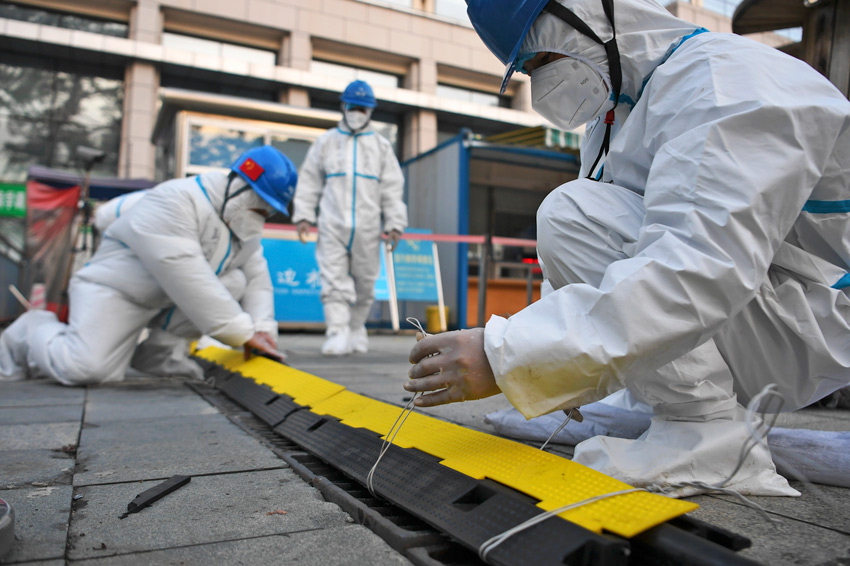 “國(guó)旗巡線(xiàn)班”為友誼關(guān)口岸防疫工作安裝電纜管群。馬華斌攝