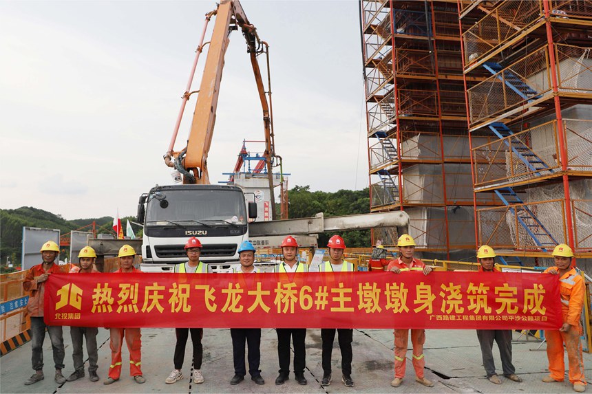 “蛟龍”出水!廣西路建集團(tuán)飛龍大橋首個(gè)主墩墩身澆筑完成