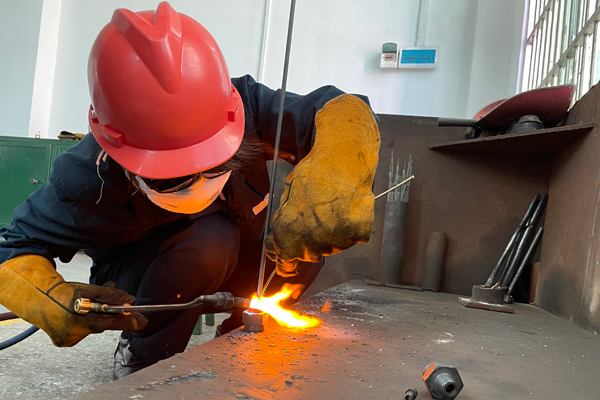 李素青正在焊接。