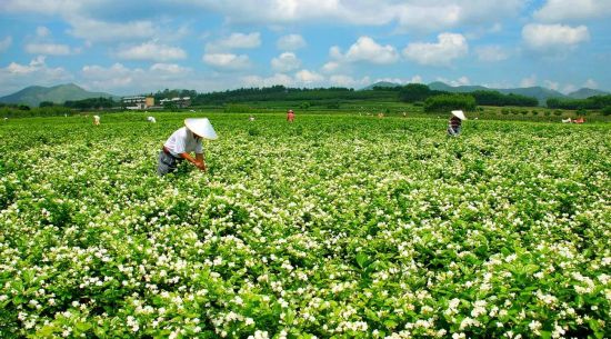橫州,一座被茉莉花香擁抱的城市,有“中國(guó)茉莉之鄉(xiāng)”的美譽(yù),傳聞全球10朵茉莉花,6朵來自廣西橫州。憑借自身地理優(yōu)勢(shì)高產(chǎn)當(dāng)?shù)靥厣岳蚧?,并以花為媒,成就一杯好茶?/p>