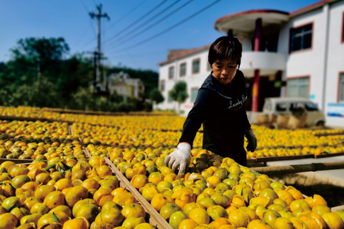 陳皮產(chǎn)業(yè)的興旺,令龍門鎮(zhèn)蓮塘村走上致富快車道。每到深秋初冬時(shí)節(jié),家家摘柑果、人人剝柑皮、戶戶曬陳皮的景象成為當(dāng)?shù)氐呢S收“風(fēng)景線”。僅僅去年,全村就添了50多輛私家車。