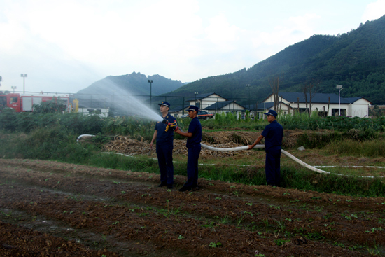永福消防救援人員為農(nóng)作物進(jìn)行噴灑灌溉。永??h融媒體中心供圖