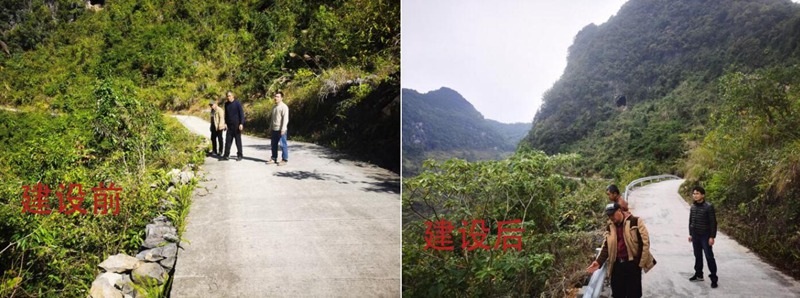 自治區(qū)自然資源廳、自治區(qū)自然資源管理干部培訓(xùn)中心資助幫扶經(jīng)費20萬元完善弄峰村部至弄標(biāo)屯道路防護欄建設(shè)714米,提升危險路段的安全保障。