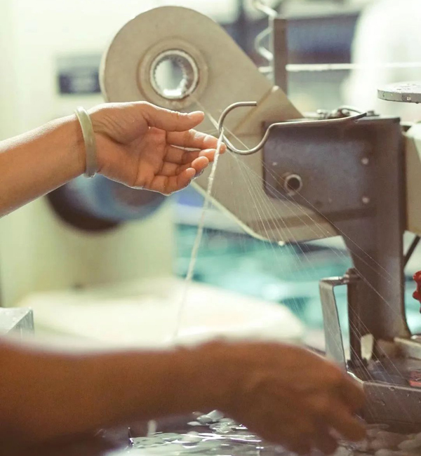 剝繭是制絲流程中剝?nèi)ダO衣的工序。繭衣是蠶繭外圍一層松亂的絲縷,纖維細而脆弱,絲膠含量多,不能繅絲,只可作為絹紡原料,剝掉表面的繭衣,有利手選繭、煮繭和繅絲并能提高生絲質(zhì)量,剝除的繭衣量必須適當,剝除太多會影響出絲量:太少則會影響品質(zhì),因此看似小小的動作,我們也進行了嚴格的規(guī)范化動作培訓,確保每一道工序的統(tǒng)一性。
