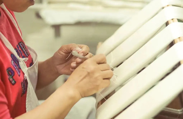 均勻鋪平后,用棉紗上下將蠶絲包住,進一步防治蠶絲跑絲,使蠶絲被更耐用,不易變形。