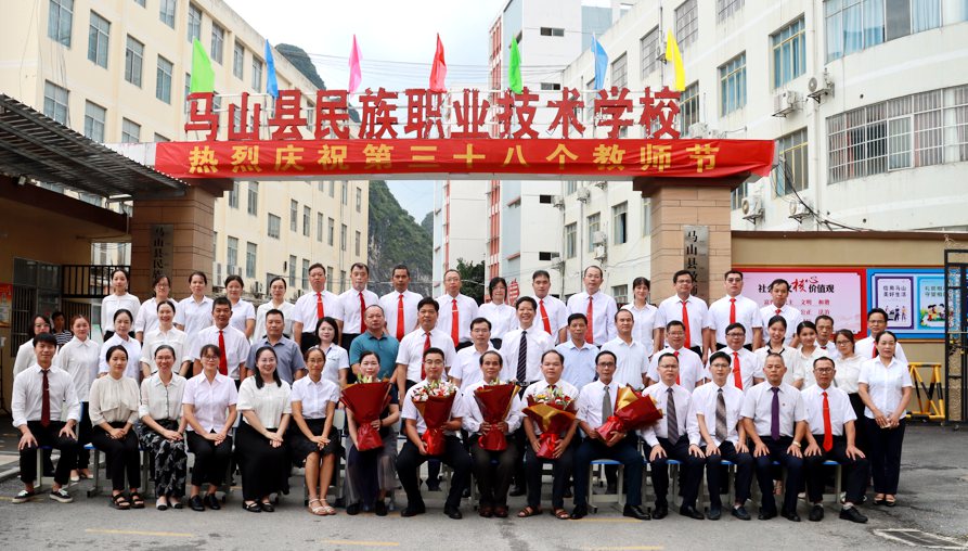 在當(dāng)天的慶祝大會(huì)上,馬山縣民族職業(yè)技術(shù)學(xué)校校長李三平以“今天,舞臺(tái)的主角是教師”為題,感謝老師們?yōu)閷W(xué)校的發(fā)展做出突出貢獻(xiàn)。學(xué)校表彰了一批優(yōu)秀共產(chǎn)黨員、優(yōu)秀班主任、優(yōu)秀教師以及市級(jí)以上榮譽(yù)獲得者;為離退休教師送鮮花,并邀請(qǐng)他們發(fā)表感言。