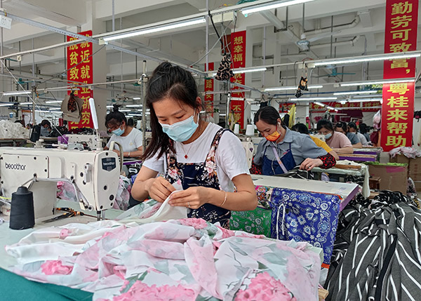 “作為國家鄉(xiāng)村振興重點(diǎn)幫扶縣,要用足用活各項(xiàng)幫扶政策,鞏固脫貧成果,防止出現(xiàn)規(guī)模性返貧?!碧斓瓤h委書記麥成柱介紹,就業(yè)幫扶車間為農(nóng)民而建,優(yōu)先吸納附近脫貧農(nóng)戶,特別是低收入人口、弱勞動力人口及殘疾群眾就業(yè)。目前,天等縣有就業(yè)幫扶車間338家,累計(jì)帶動就業(yè)2.23萬人,其中脫貧勞動力8000多人。