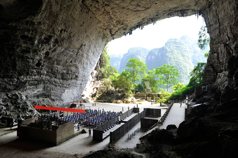 在河池市東蘭縣武篆鎮(zhèn)巴學(xué)村拉甲山,有一個(gè)高43米、寬64米、縱深137米、面積逾8000平方米的天然石洞,這里便是廣西農(nóng)民運(yùn)動(dòng)講習(xí)所舊址——列寧巖。