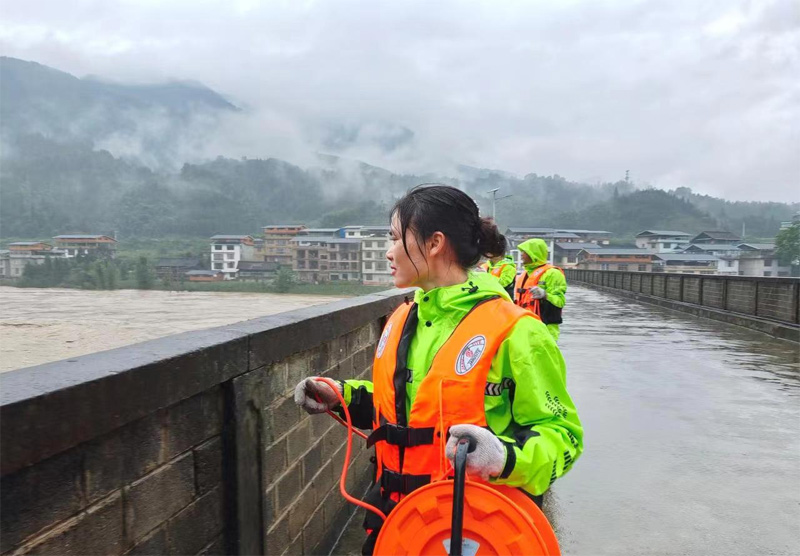莫建英率隊(duì)在漓江開展汛期防洪排查。學(xué)校供圖