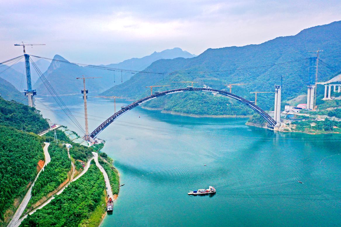經(jīng)過(guò)數(shù)百名建設(shè)者的辛勤付出,龍灘特大橋外包混凝土底板環(huán)將于11月10日前合龍。這座全長(zhǎng)2488.55米、跨徑600米的上承式勁性骨架混凝土拱橋,是世界上在建的最大跨徑拱橋,該橋由中國(guó)工程院院士鄭皆連主持修建。