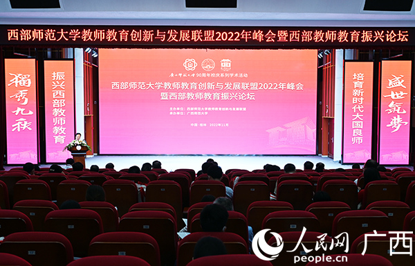 人民網(wǎng)桂林11月13日電 (記者沈泉池)11月12日,西部師范大學教師教育創(chuàng)新與發(fā)展聯(lián)盟2022年峰會暨西部教師教育振興論壇在廣西師范大學雁山校區(qū)舉行?;顒右浴罢衽d西部教師教育,培育新時代大國良師”為主題,與會嘉賓圍繞如何支持西部欠發(fā)達地區(qū)的師范建設、加強學校人才隊伍建設、學科專業(yè)建設,整體提高教育辦學水平,為西部欠發(fā)達地區(qū)培養(yǎng)高質(zhì)量基礎教育教師,為鄉(xiāng)村教育發(fā)展和鄉(xiāng)村振興提供堅強人才支撐支新招、出實招、亮妙招。