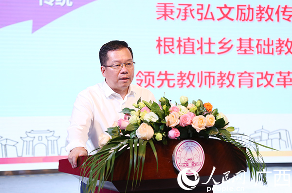 廣西師范大學校長賀祖斌致辭。人民網(wǎng)記者 嚴立政攝