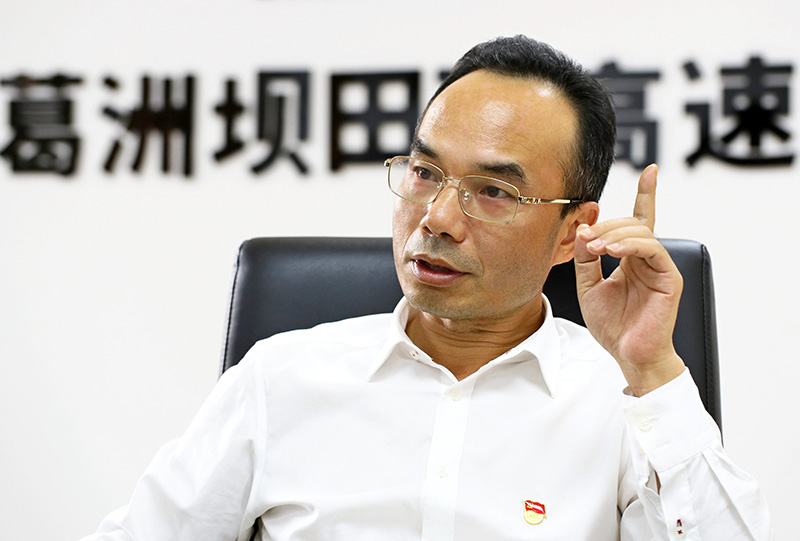 廣西葛洲壩田西高速公路有限公司黨支部書記、董事長茍永平接受人民網(wǎng)專訪。何善權攝