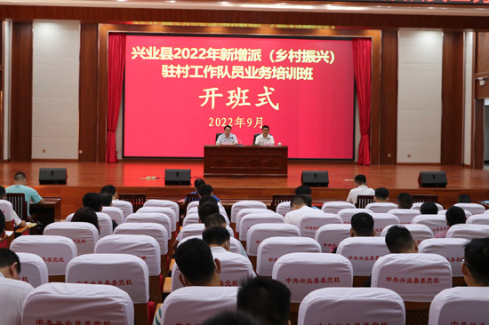 興業(yè)縣新增派(鄉(xiāng)村振興)駐村工作隊員業(yè)務(wù)培訓(xùn)班現(xiàn)場。興業(yè)縣委組織部供圖