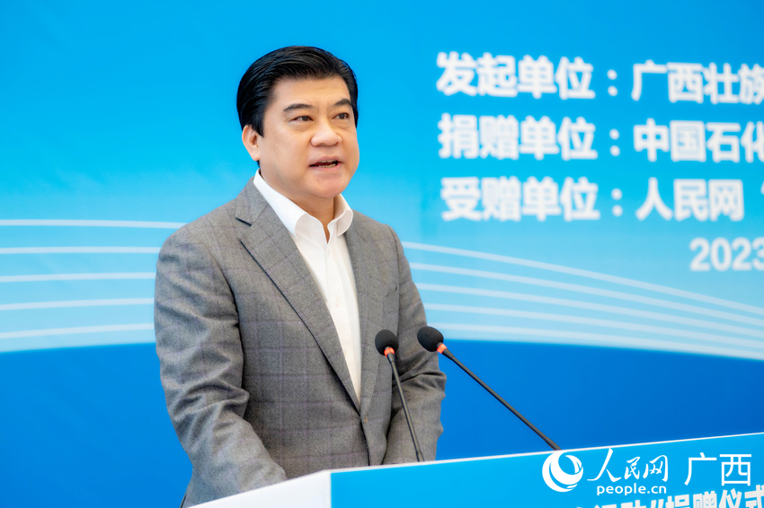 中國石化廣西石油分公司總經理、黨委副書記李力波致辭。人民網記者 嚴立政攝