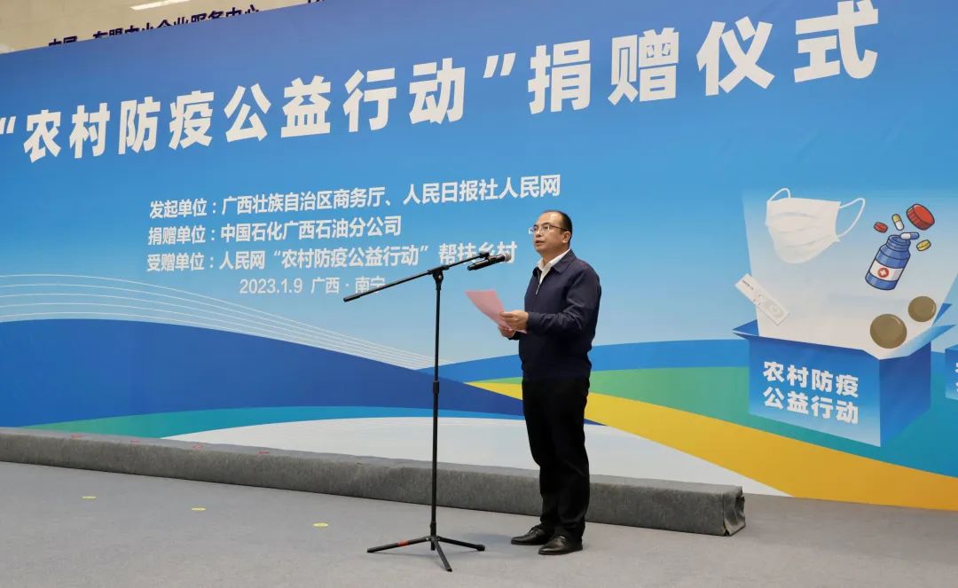 捐贈儀式由自治區(qū)商務廳副廳長粟堅主持。廣西商務廳供圖