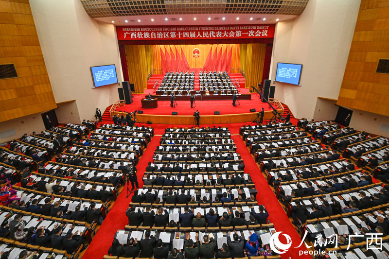 廣西壯族自治區(qū)十四屆人大一次會(huì)議開(kāi)幕。人民網(wǎng) 嚴(yán)立政攝