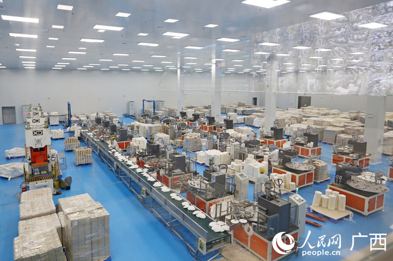 忙碌的環(huán)保餐具生產(chǎn)線。人民網(wǎng) 黃子婧攝