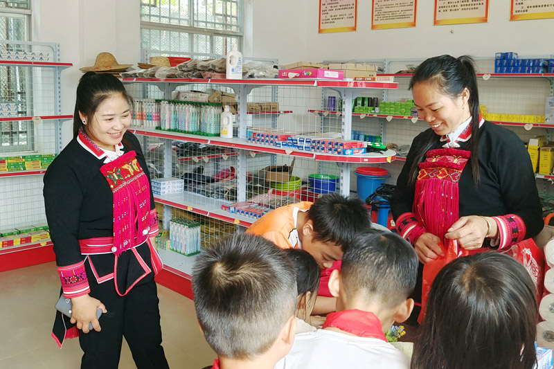 在百色市田林縣潞城瑤族鄉(xiāng)各煙村愛(ài)心超市,貨架上各類(lèi)生活用品一字排開(kāi)。這些貨物沒(méi)有標(biāo)明價(jià)格,而是注明了分值。前來(lái)采購(gòu)的村民不用付錢(qián),只憑手里的“積分卡”就能進(jìn)行貨物兌換。