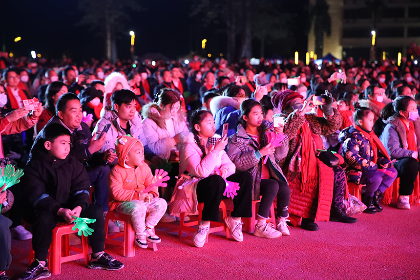 群眾喜氣洋洋觀看晚會。盧文斐攝