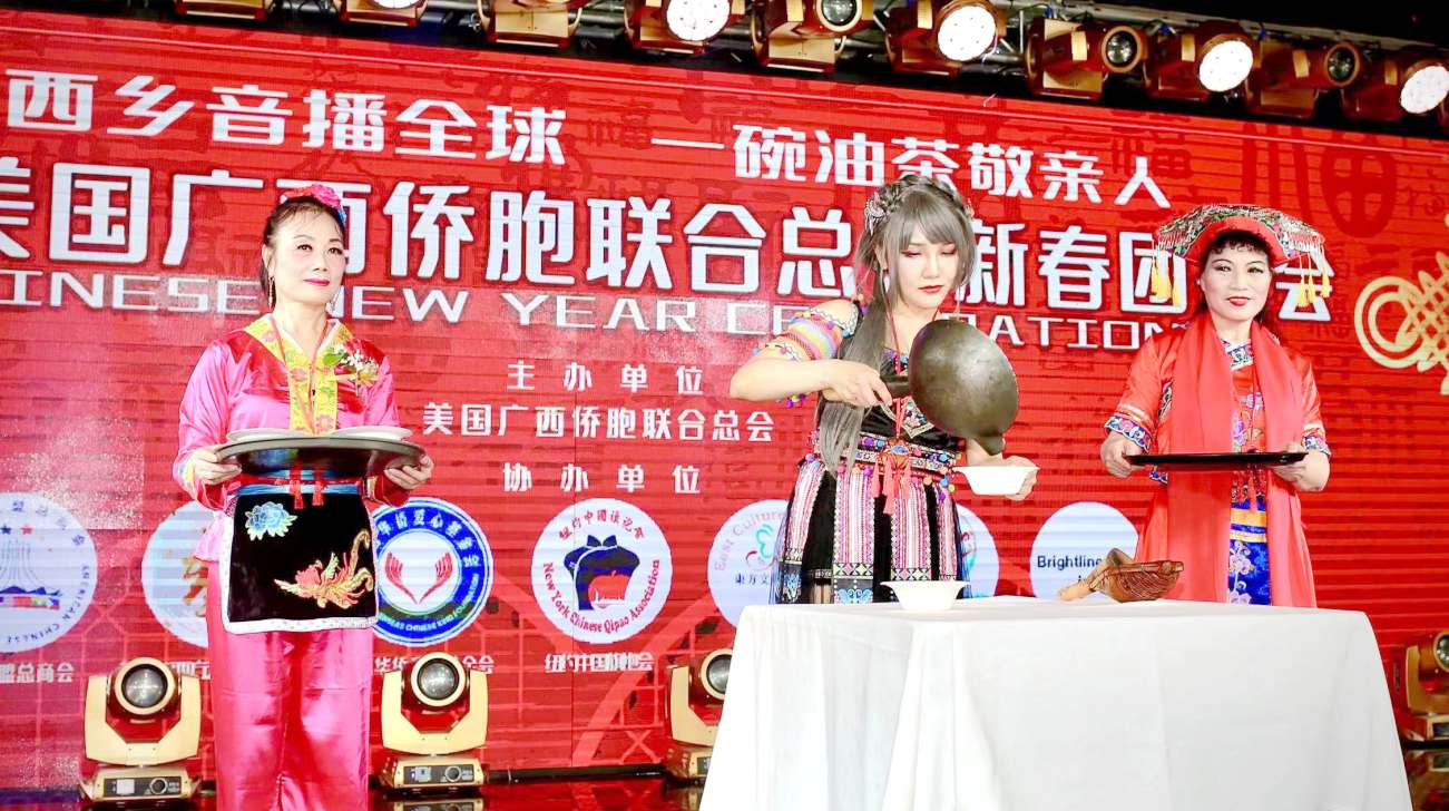 1月18日,從廣西壯族自治區(qū)僑聯(lián)獲悉,美國廣西僑胞聯(lián)合總會(huì)日前在美國紐約市法拉盛舉辦了一場(chǎng)以“一碗油茶敬親人”為主題的《廣西鄉(xiāng)音播全球》2023春節(jié)聯(lián)歡晚會(huì)。晚會(huì)以歌舞、曲藝、小品、服裝走秀等形式舉行。把剛剛?cè)脒x聯(lián)合國教科文組織人類非物質(zhì)文化遺產(chǎn)代表作——世界非物質(zhì)文化遺產(chǎn)習(xí)俗表演《瑤鄉(xiāng)油茶》,也編成舞蹈搬上了舞臺(tái),旨在向世界推介廣西特色民俗文化,推介廣西特色非遺產(chǎn)品。