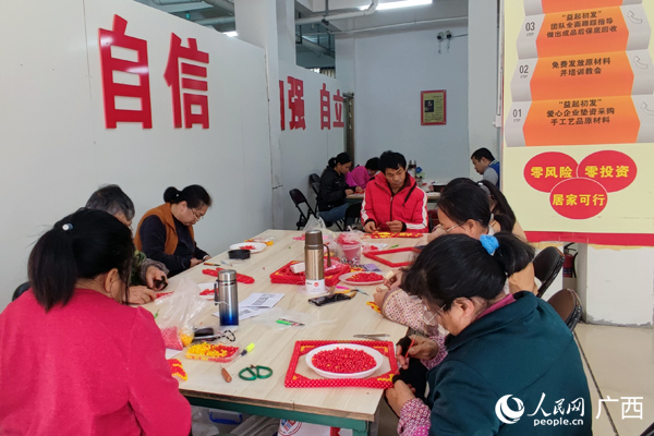 脫貧戶(hù)正在家門(mén)口工廠進(jìn)行工作。人民網(wǎng)記者 王勇攝